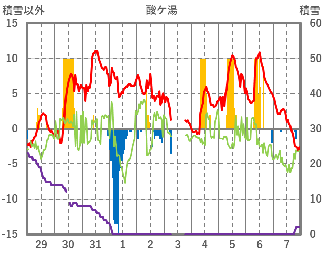 | 日 | 時 | 気温 | 降水 | 風向/風速 | 日照 | 積雪 | 降雪 |