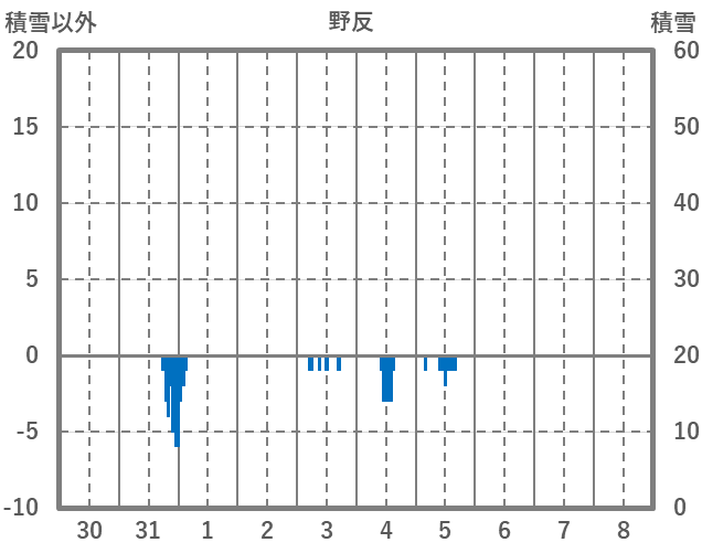 | 日 | 時 | 気温 | 降水 | 風向/風速 | 日照 | 積雪 | 降雪 |