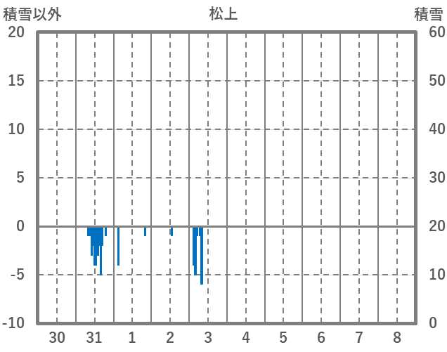 | 日 | 時 | 気温 | 降水 | 風向/風速 | 日照 | 積雪 | 降雪 |