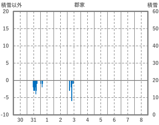 | 日 | 時 | 気温 | 降水 | 風向/風速 | 日照 | 積雪 | 降雪 |