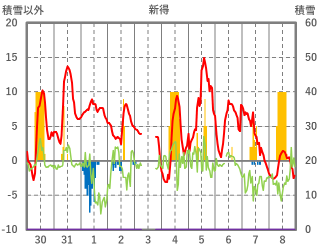 | 日 | 時 | 気温 | 降水 | 風向/風速 | 日照 | 積雪 | 降雪 |