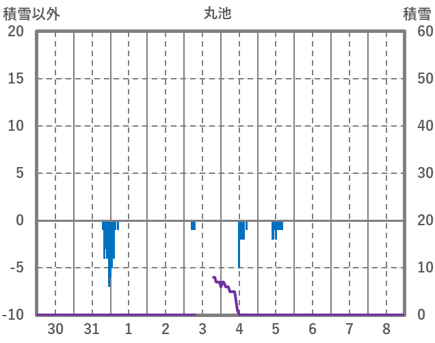 | 日 | 時 | 気温 | 降水 | 風向/風速 | 日照 | 積雪 | 降雪 |