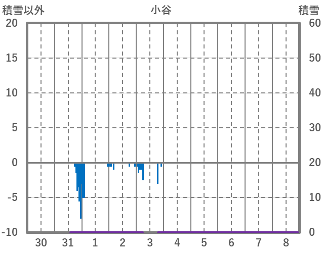 | 日 | 時 | 気温 | 降水 | 風向/風速 | 日照 | 積雪 | 降雪 |