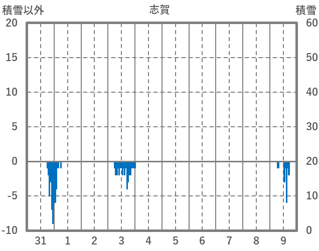| 日 | 時 | 気温 | 降水 | 風向/風速 | 日照 | 積雪 | 降雪 |