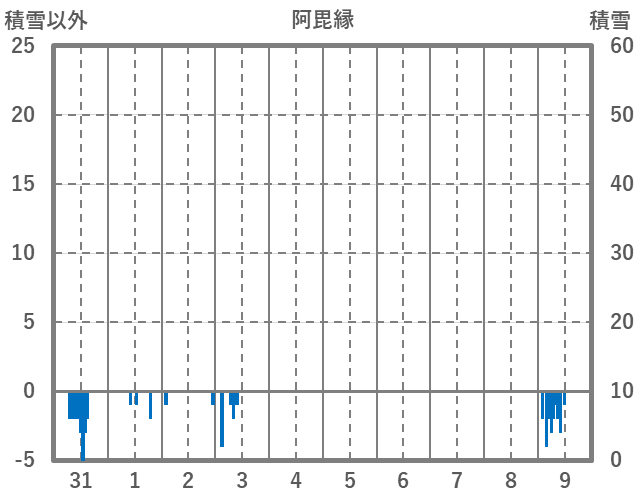 | 日 | 時 | 気温 | 降水 | 風向/風速 | 日照 | 積雪 | 降雪 |