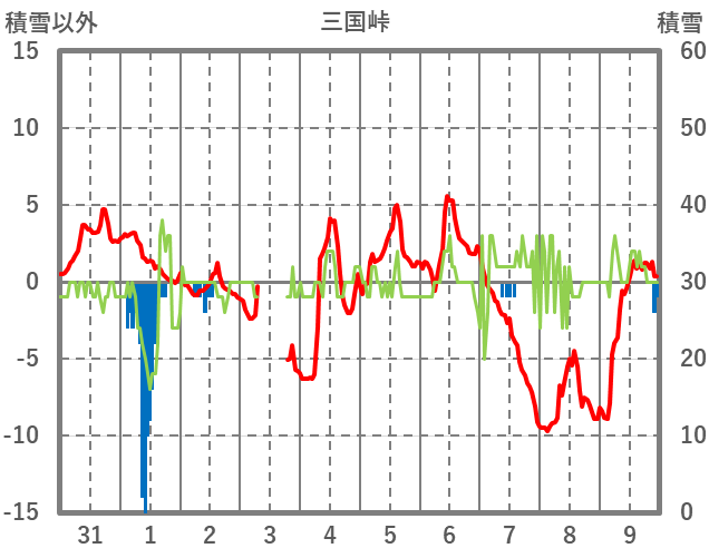 | 日 | 時 | 気温 | 降水 | 風向/風速 | 日照 | 積雪 | 降雪 |