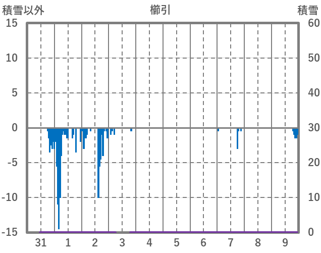 | 日 | 時 | 気温 | 降水 | 風向/風速 | 日照 | 積雪 | 降雪 |