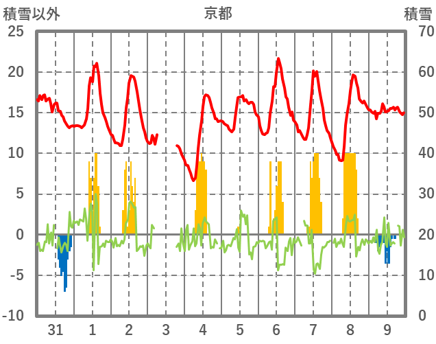 | 日 | 時 | 気温 | 降水 | 風向/風速 | 日照 | 積雪 | 降雪 |
