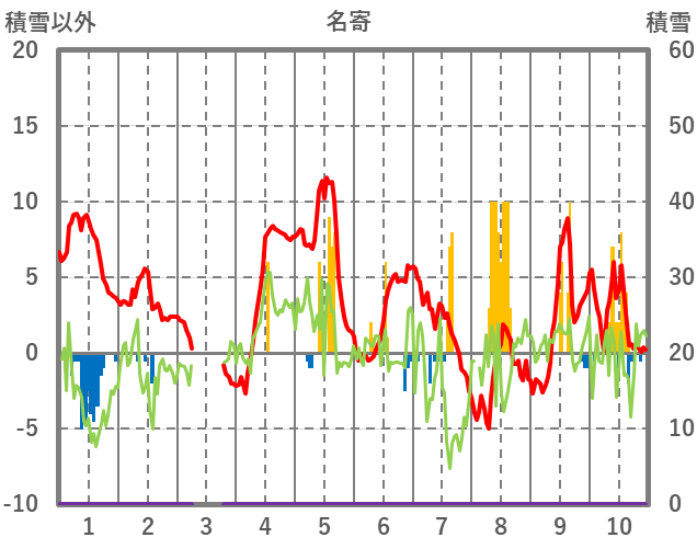 | 日 | 時 | 気温 | 降水 | 風向/風速 | 日照 | 積雪 | 降雪 |