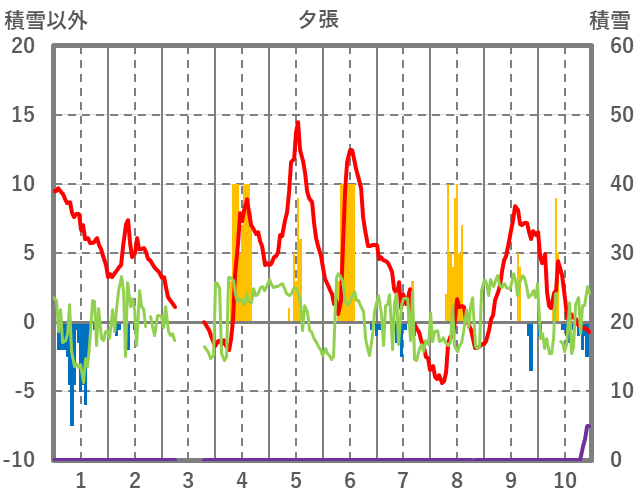 | 日 | 時 | 気温 | 降水 | 風向/風速 | 日照 | 積雪 | 降雪 |