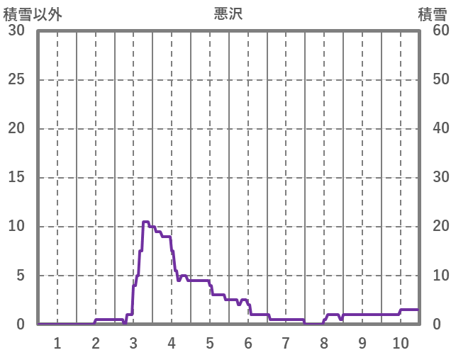 | 日 | 時 | 気温 | 降水 | 風向/風速 | 日照 | 積雪 | 降雪 |