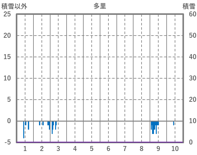 | 日 | 時 | 気温 | 降水 | 風向/風速 | 日照 | 積雪 | 降雪 |
