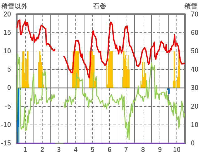 | 日 | 時 | 気温 | 降水 | 風向/風速 | 日照 | 積雪 | 降雪 |
