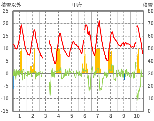 | 日 | 時 | 気温 | 降水 | 風向/風速 | 日照 | 積雪 | 降雪 |