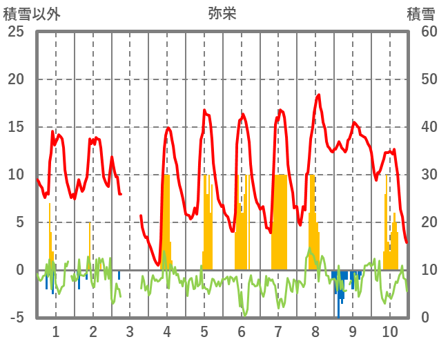 | 日 | 時 | 気温 | 降水 | 風向/風速 | 日照 | 積雪 | 降雪 |