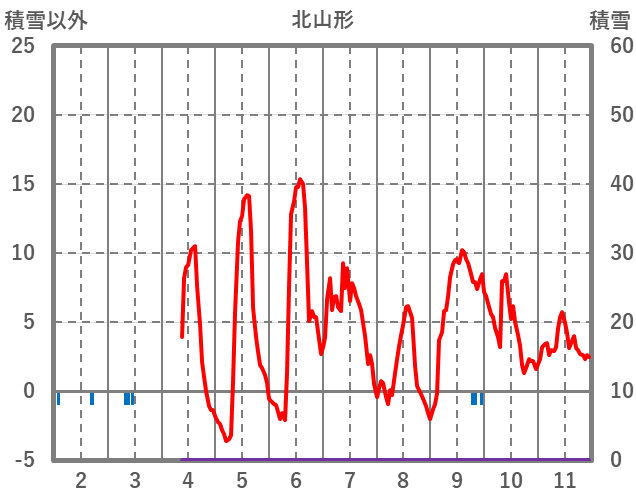 | 日 | 時 | 気温 | 降水 | 風向/風速 | 日照 | 積雪 | 降雪 |