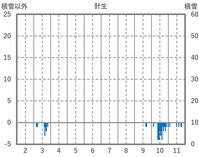 | 日 | 時 | 気温 | 降水 | 風向/風速 | 日照 | 積雪 | 降雪 |