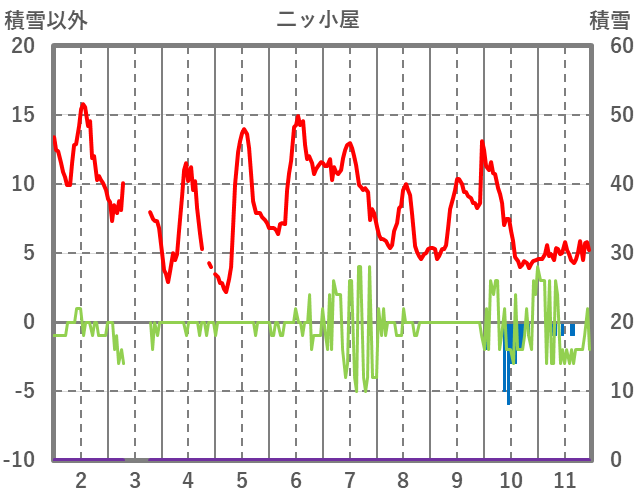 | 日 | 時 | 気温 | 降水 | 風向/風速 | 日照 | 積雪 | 降雪 |