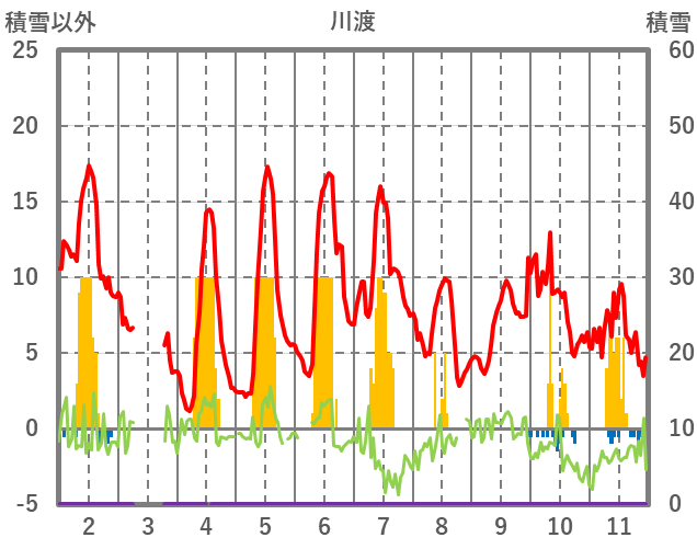 | 日 | 時 | 気温 | 降水 | 風向/風速 | 日照 | 積雪 | 降雪 |
