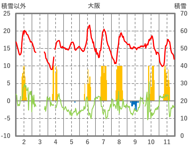 | 日 | 時 | 気温 | 降水 | 風向/風速 | 日照 | 積雪 | 降雪 |