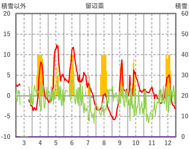 | 日 | 時 | 気温 | 降水 | 風向/風速 | 日照 | 積雪 | 降雪 |