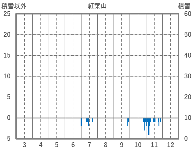 | 日 | 時 | 気温 | 降水 | 風向/風速 | 日照 | 積雪 | 降雪 |