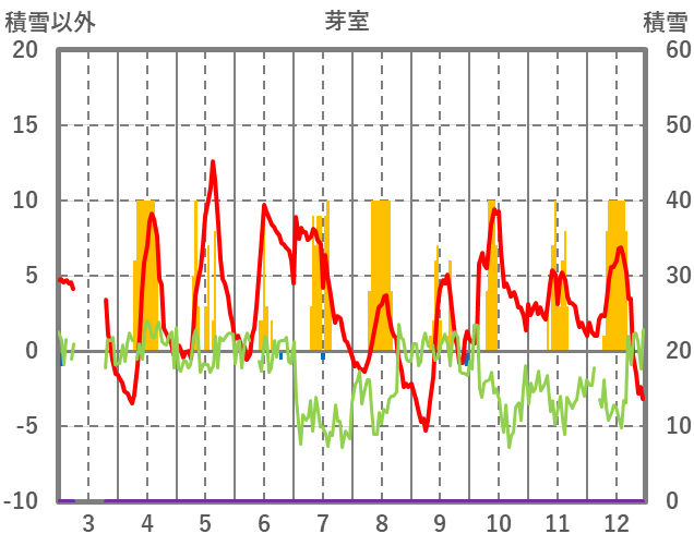 | 日 | 時 | 気温 | 降水 | 風向/風速 | 日照 | 積雪 | 降雪 |