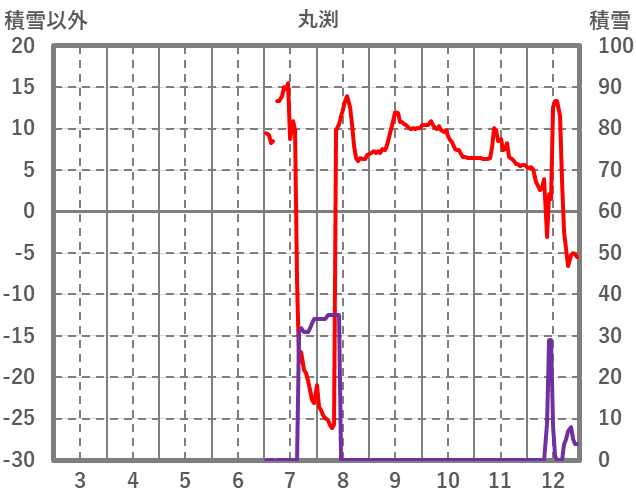 | 日 | 時 | 気温 | 降水 | 風向/風速 | 日照 | 積雪 | 降雪 |