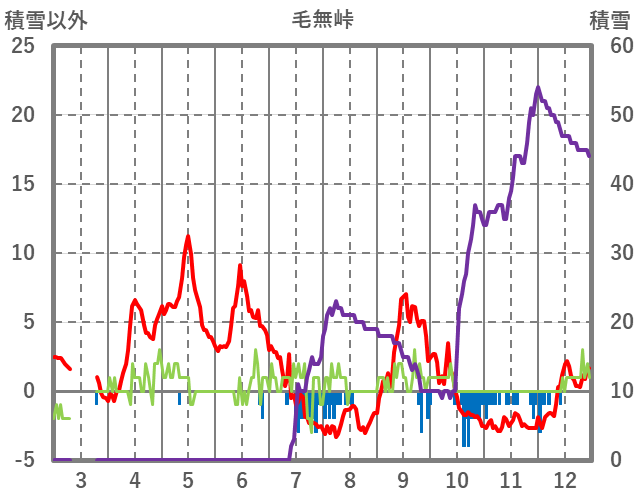 | 日 | 時 | 気温 | 降水 | 風向/風速 | 日照 | 積雪 | 降雪 |