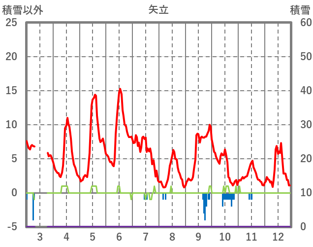 | 日 | 時 | 気温 | 降水 | 風向/風速 | 日照 | 積雪 | 降雪 |