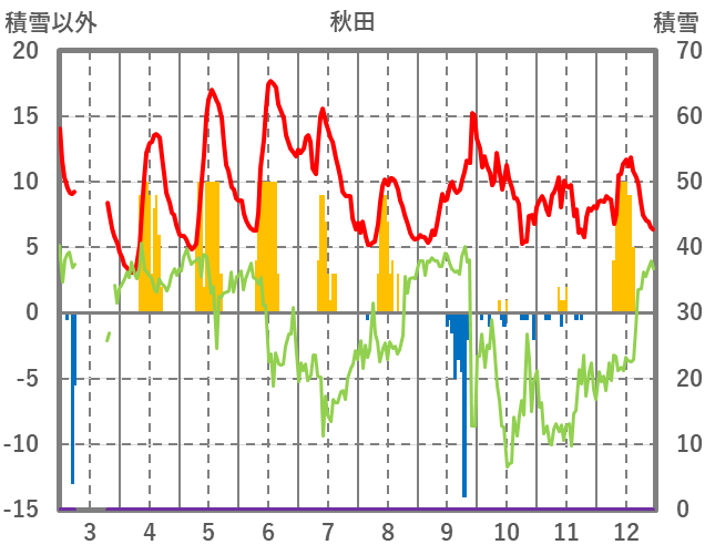 | 日 | 時 | 気温 | 降水 | 風向/風速 | 日照 | 積雪 | 降雪 |