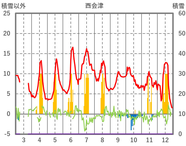 | 日 | 時 | 気温 | 降水 | 風向/風速 | 日照 | 積雪 | 降雪 |