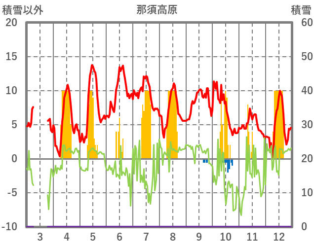 | 日 | 時 | 気温 | 降水 | 風向/風速 | 日照 | 積雪 | 降雪 |