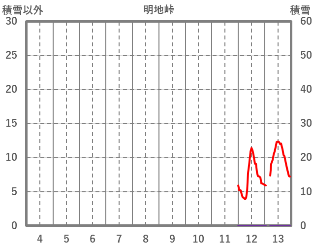 | 日 | 時 | 気温 | 降水 | 風向/風速 | 日照 | 積雪 | 降雪 |