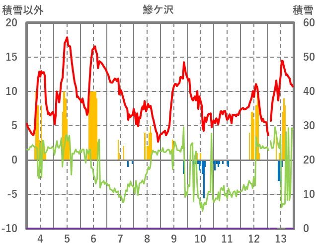 | 日 | 時 | 気温 | 降水 | 風向/風速 | 日照 | 積雪 | 降雪 |
