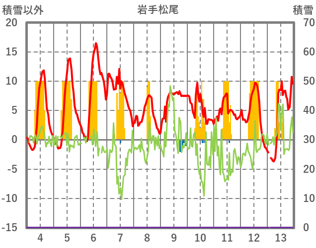 | 日 | 時 | 気温 | 降水 | 風向/風速 | 日照 | 積雪 | 降雪 |