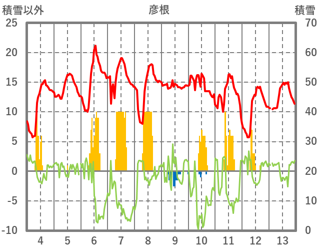 | 日 | 時 | 気温 | 降水 | 風向/風速 | 日照 | 積雪 | 降雪 |