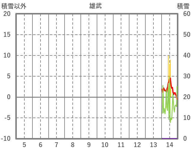 | 日 | 時 | 気温 | 降水 | 風向/風速 | 日照 | 積雪 | 降雪 |
