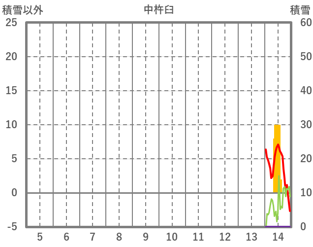 | 日 | 時 | 気温 | 降水 | 風向/風速 | 日照 | 積雪 | 降雪 |