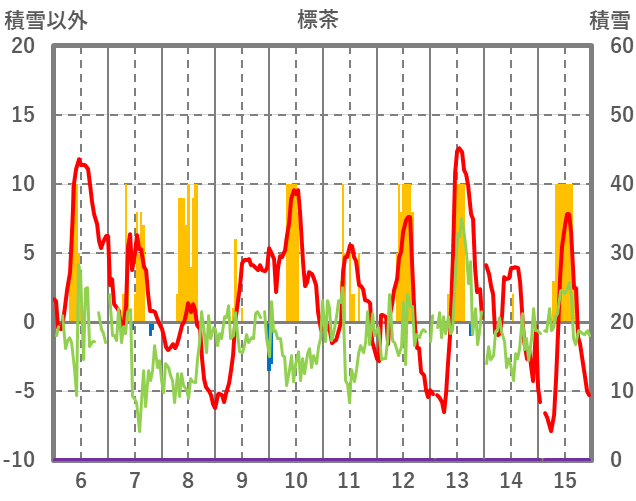 | 日 | 時 | 気温 | 降水 | 風向/風速 | 日照 | 積雪 | 降雪 |