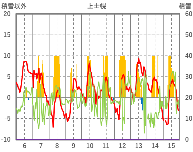 | 日 | 時 | 気温 | 降水 | 風向/風速 | 日照 | 積雪 | 降雪 |