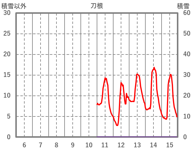 | 日 | 時 | 気温 | 降水 | 風向/風速 | 日照 | 積雪 | 降雪 |