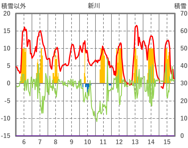 | 日 | 時 | 気温 | 降水 | 風向/風速 | 日照 | 積雪 | 降雪 |