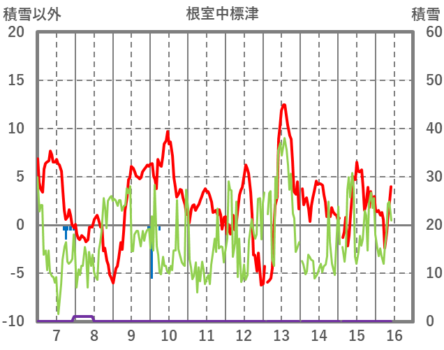 | 日 | 時 | 気温 | 降水 | 風向/風速 | 日照 | 積雪 | 降雪 |