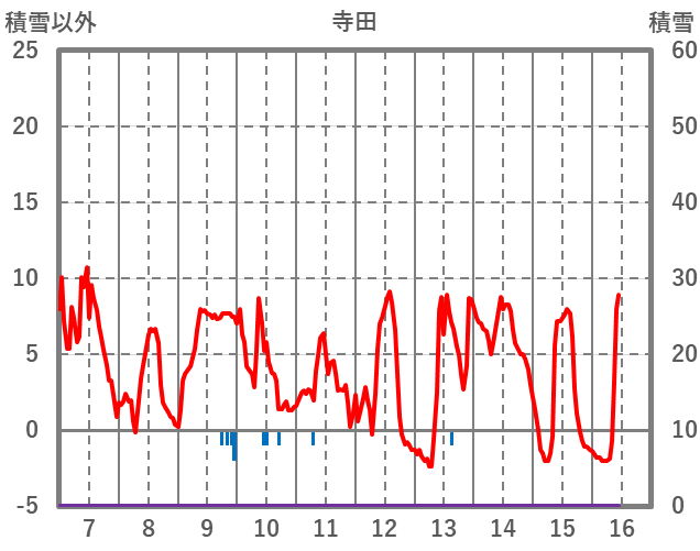 | 日 | 時 | 気温 | 降水 | 風向/風速 | 日照 | 積雪 | 降雪 |