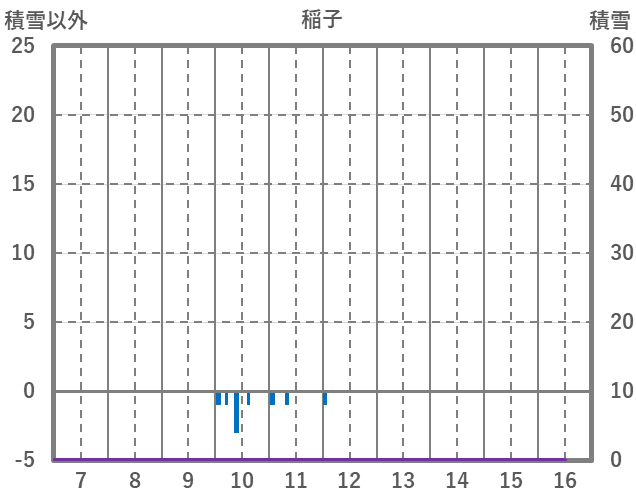 | 日 | 時 | 気温 | 降水 | 風向/風速 | 日照 | 積雪 | 降雪 |