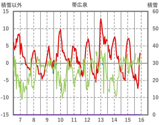 | 日 | 時 | 気温 | 降水 | 風向/風速 | 日照 | 積雪 | 降雪 |