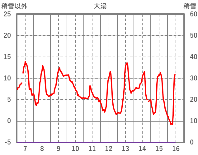 | 日 | 時 | 気温 | 降水 | 風向/風速 | 日照 | 積雪 | 降雪 |