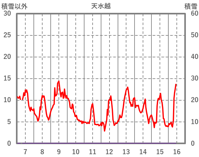 | 日 | 時 | 気温 | 降水 | 風向/風速 | 日照 | 積雪 | 降雪 |