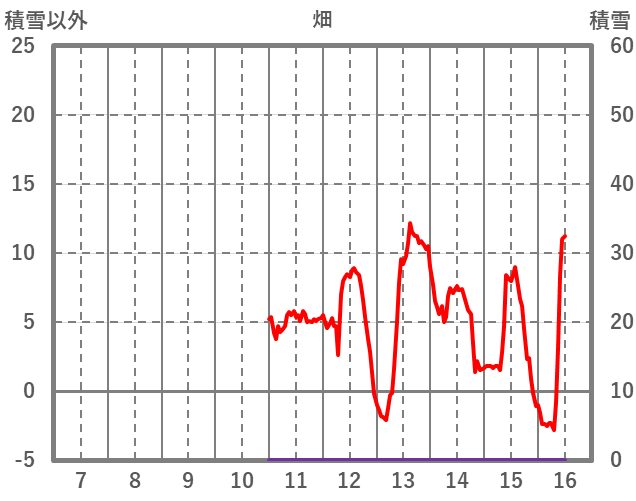 | 日 | 時 | 気温 | 降水 | 風向/風速 | 日照 | 積雪 | 降雪 |